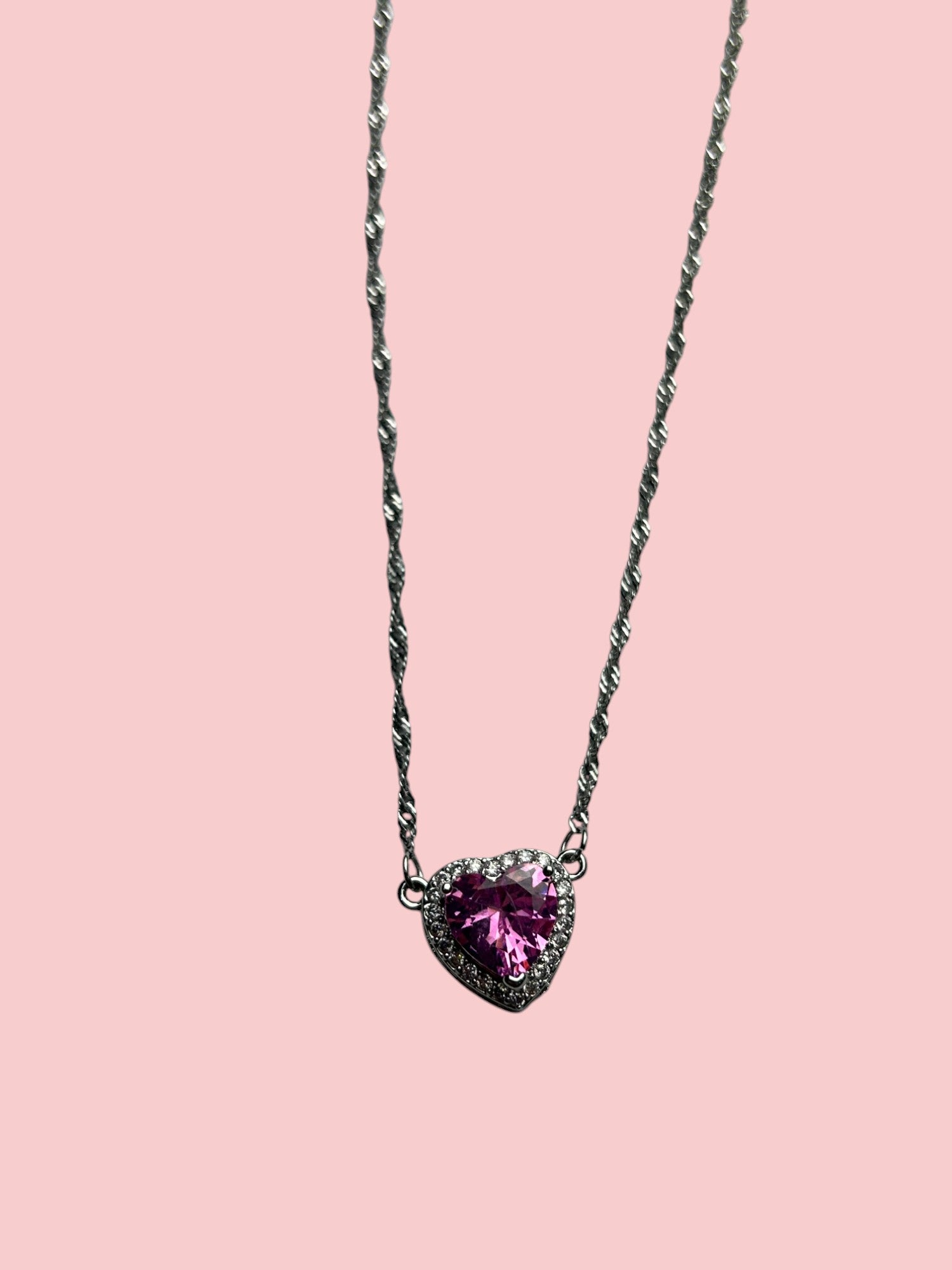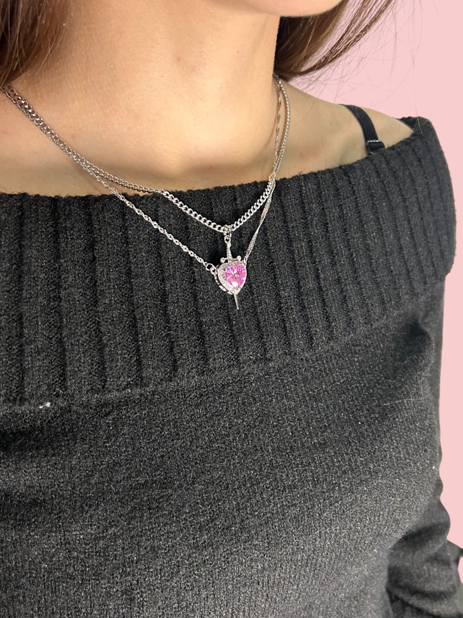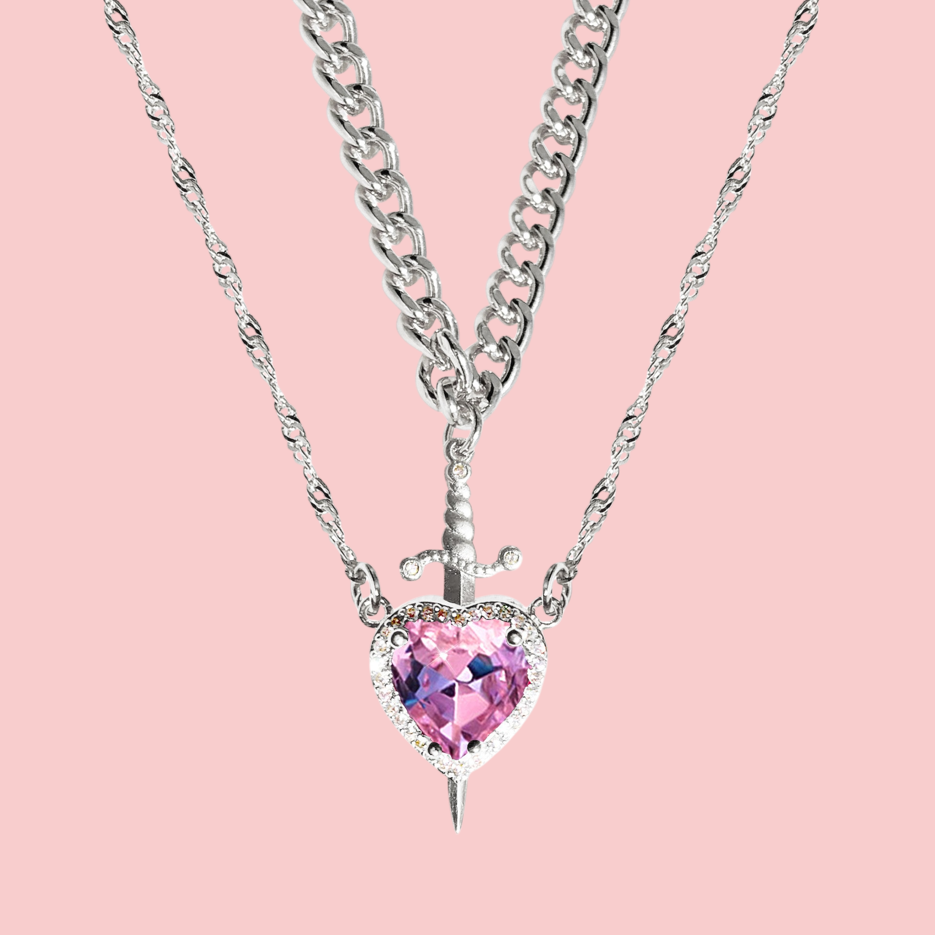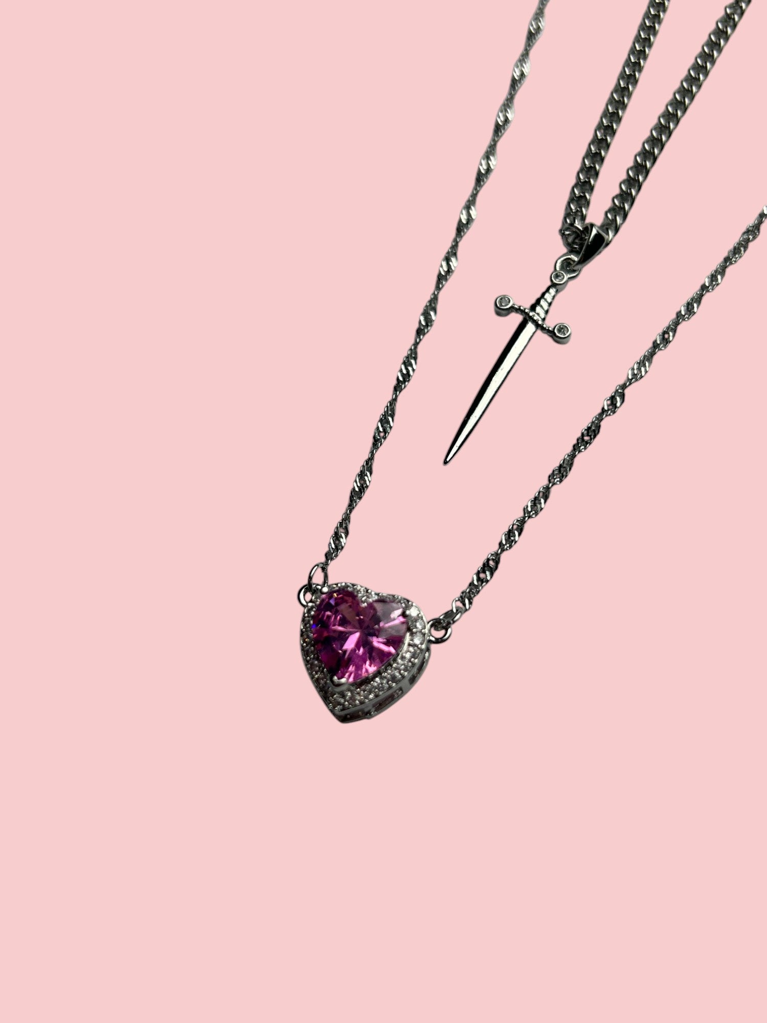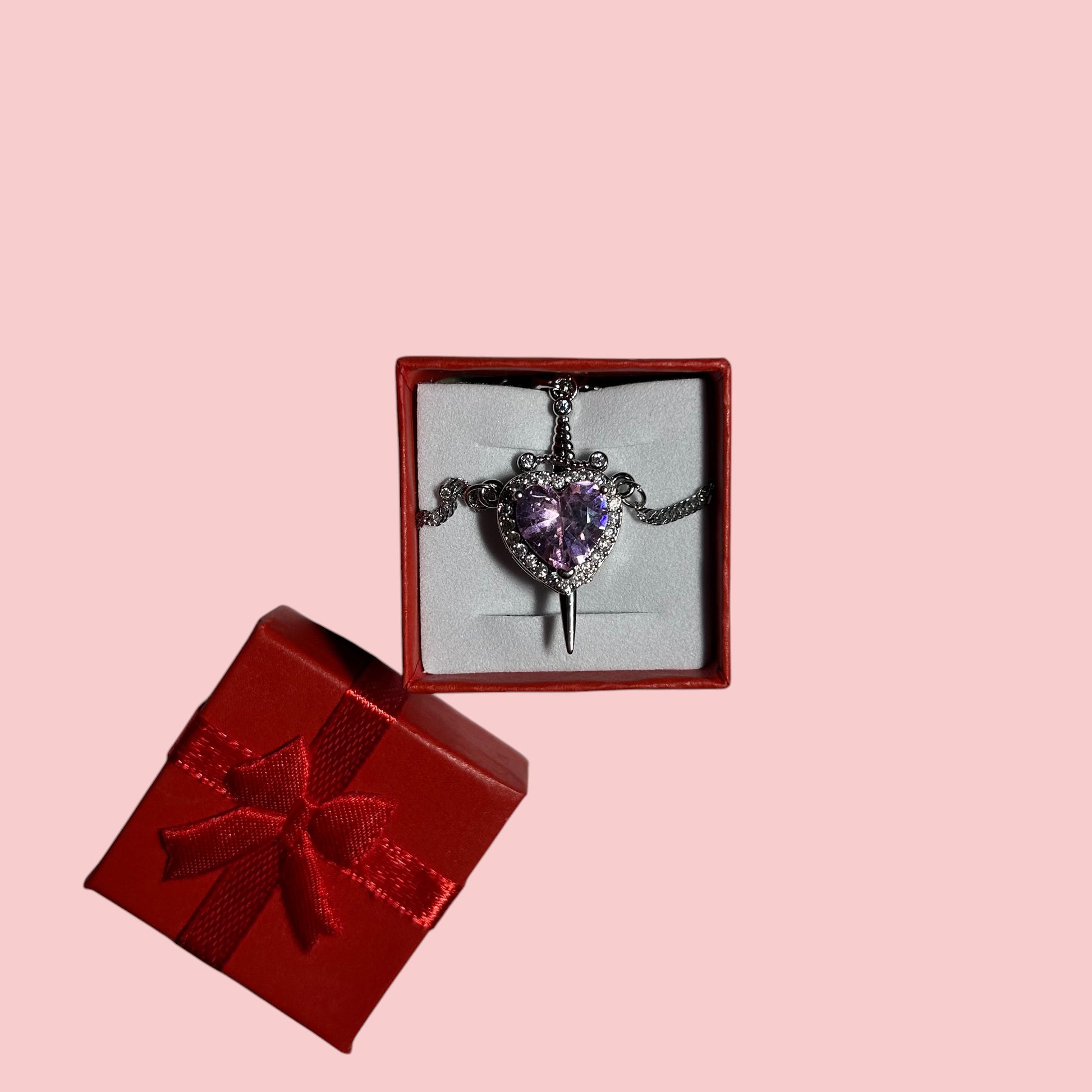 Set de colier din argint „Sabie Inimă Roz”